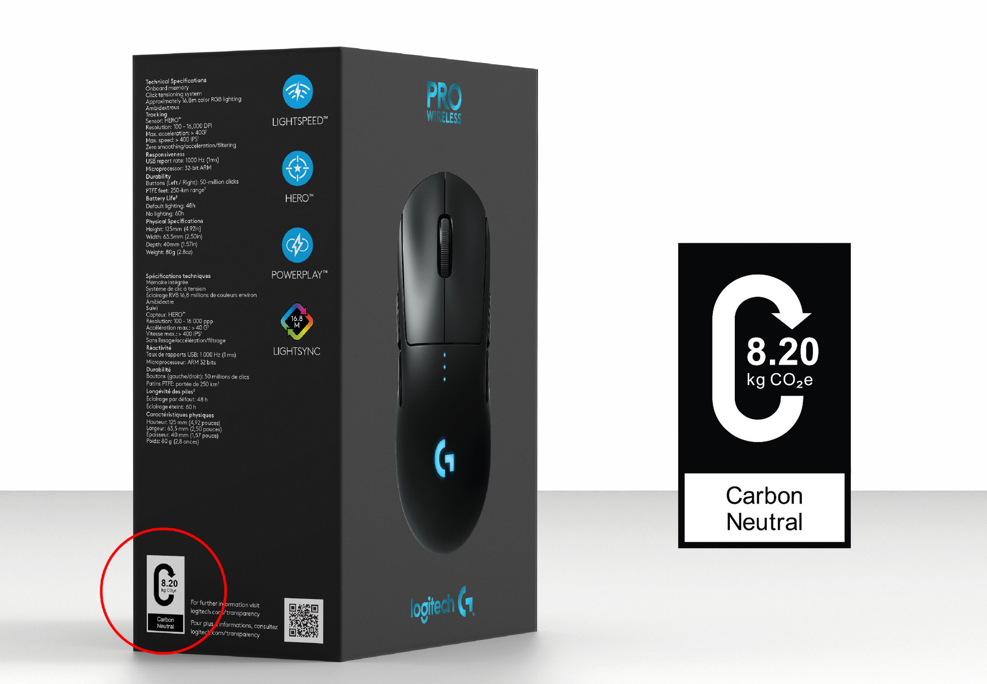 羅技的圖示是一個圍成「C」形狀的箭頭,代表「碳」,然後在中間寫上產品生命週期的總體碳排值。至於計算方式,則是由羅技自行研擬的一個「生命週期分析」公式來達成。這個公式參考了 DEKRA 標準,在初步你可以比較羅技的滑鼠產品間,誰的碳排值較低,又或是新一代的產品有沒有更減碳,但羅技希望未來其他科技廠商也能加入,並使用一樣的公式來計算,如此所有的產品就都有了一個公平的比較基準,可以供介意此類數據的消費者進行參考、比較,作為另一個購買時的決定因素。