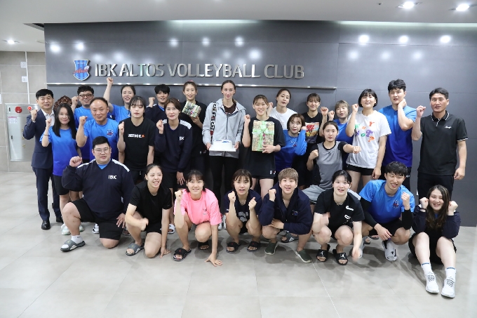 기업은행 선수단은 14일간 자가격리로 고생한 라자레바를 위해 한국의 전통문화가 담긴 선물과 저녁 만찬을 준비해 환영의 시간을 가졌다.